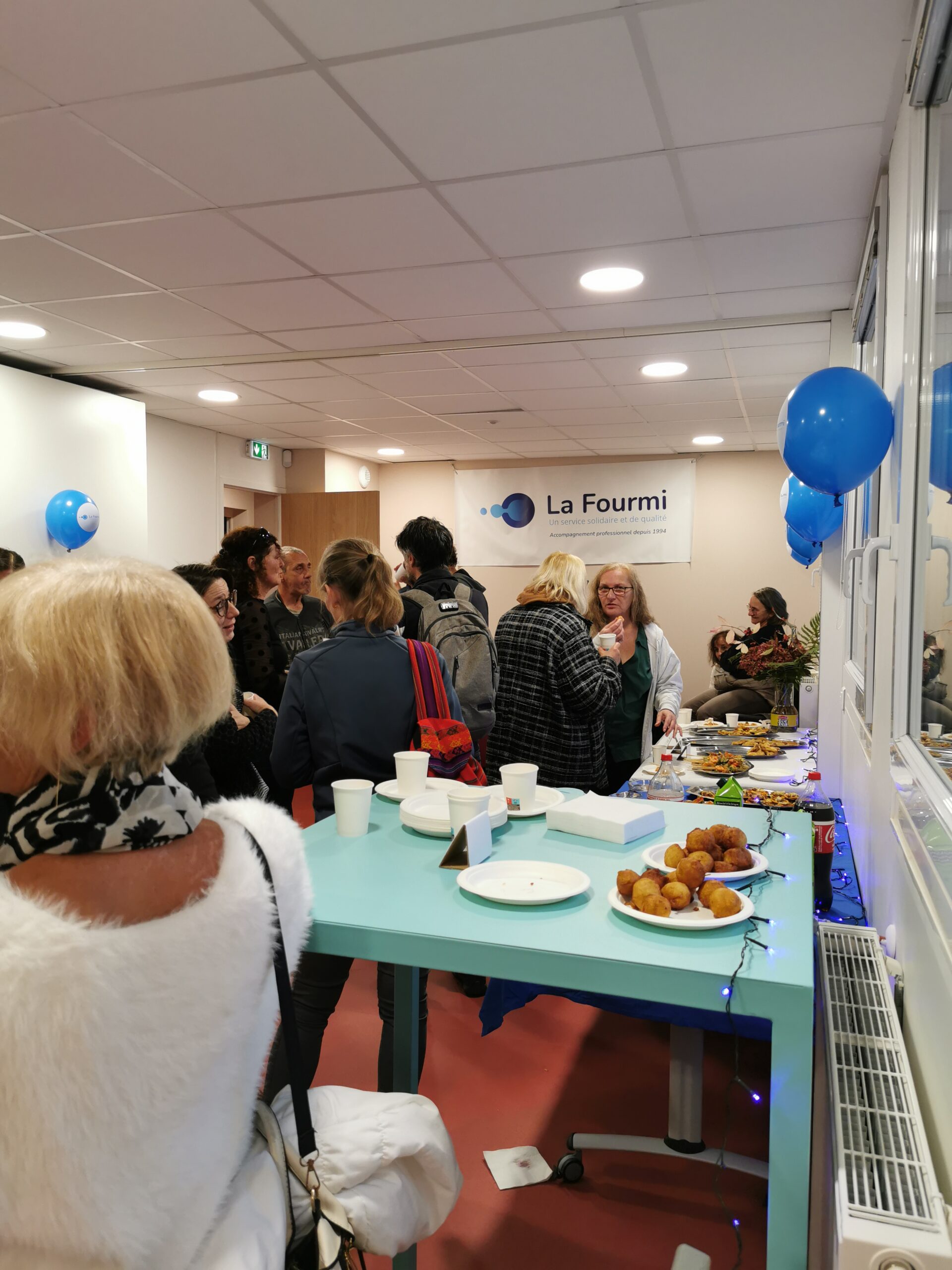 C’était jeudi 16 octobre, au sein de La Maison des Solidarités. L’équipe de La Mure, Céline Germain et Alicia Caron, avait à cœur de présenter leurs nouveaux bureaux aux salariés et aux clients de l’association. Avec la présence d’une trentaine de personnes et des équipes des autres agences de La Fourmi, le moment fût convivial et chaleureux. Des visites des locaux ont été organisées pour découvrir les lieux dédiés aux différentes structures. C’était aussi une belle occasion pour réunir les équipes de La Fourmi, les salariés en parcours et les clients. Un contexte qui change des classiques mises à disposition ou accompagnements professionnels. C’était l’occasion de parler de tout et de rien autour d’un excellent buffet.